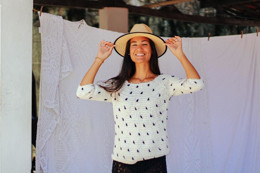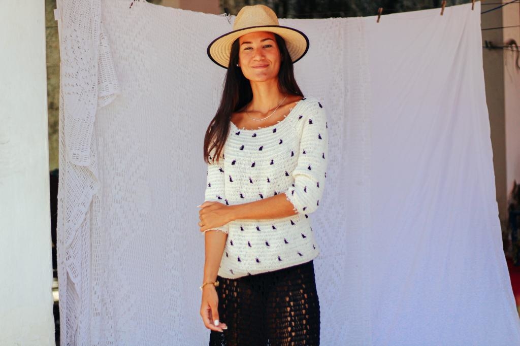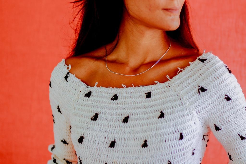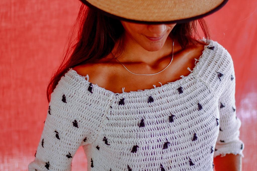 Blusa feita em Crochê, com fio 100% algodão, ponto fechado, decote canoa, manga abaixo do cotovelo