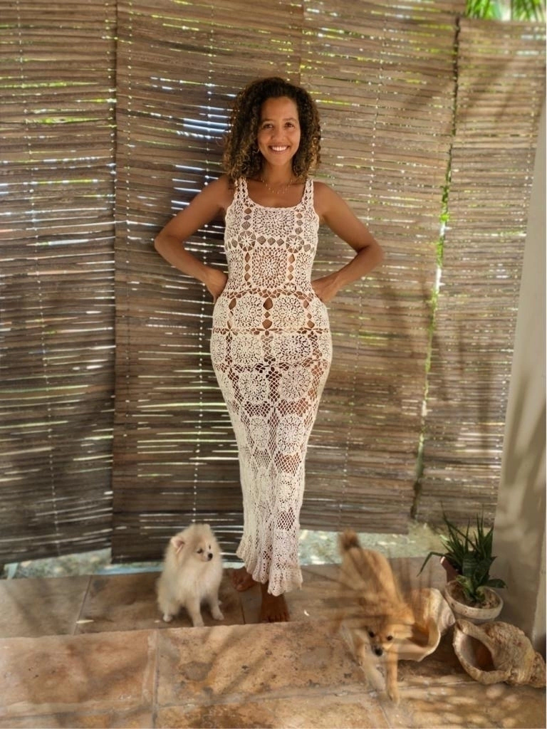 Vestido feito em Crochê, com fio 100% algodão, longo com aplicação de mandalas, fazemos por encomenda, no seu manequim