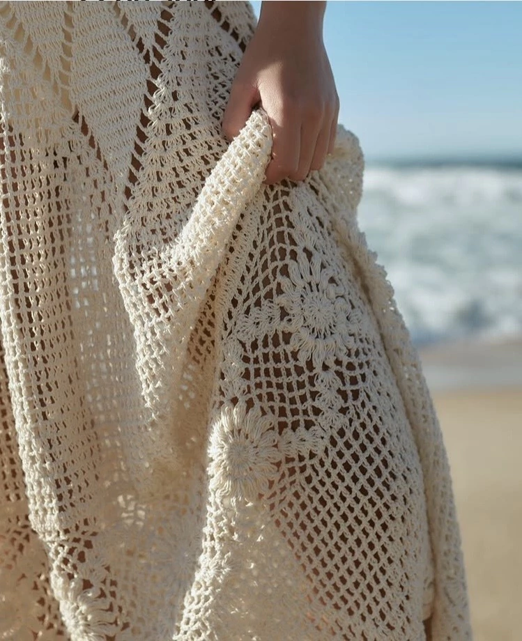 Vestido feito em crochê, com fio 100% algodão, sob medida pelas crochêteiras de Jijoca de Jericoacoara